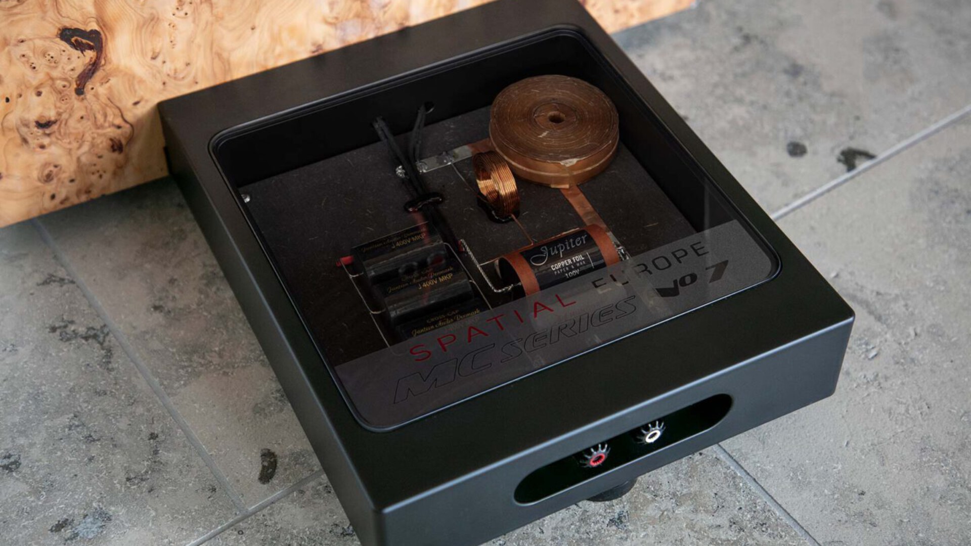 By using the 15 inch Acoustic Elegance dual voice coil bass with Faraday Copper bushing in the magnet around the voice coil makes any absorption circuit superfluous. The result is a significant increase in efficiency and a superb midrange. In combination with our newly optimized Serial crossover, the Nº 7 is a new milestone in terms of dynamics, stage imaging and timbre in Spatial Europe development.